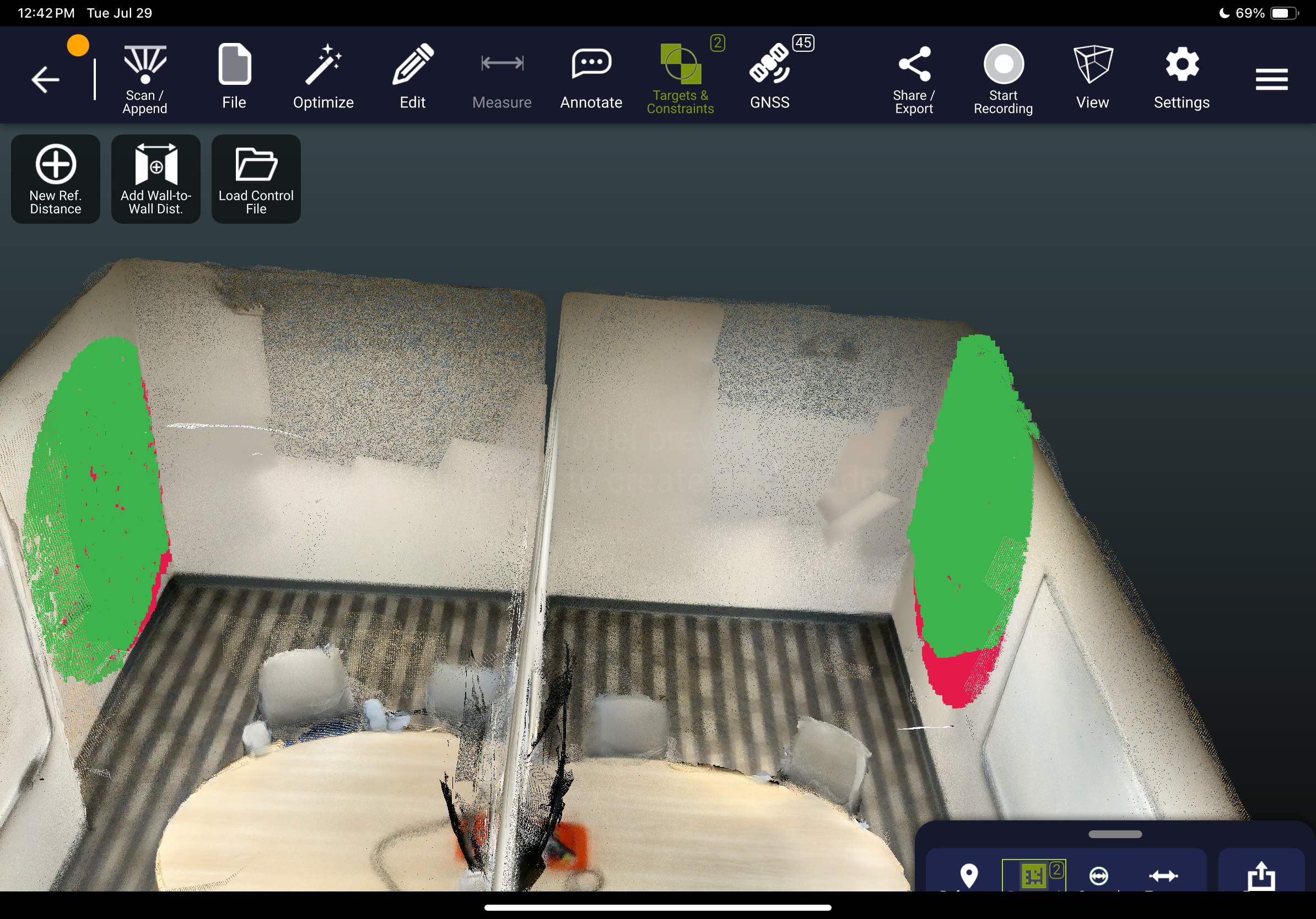 This feature is designed primarily for interiors but can be applied to any scene with large surfaces you trust as being parallel/antiparallel to each other. If more unsure of the angles of walls in relation to each other, target measurements still remain the better option. Head on over to Targeting & Constraints after scanning to give this exciting new feature a try today!